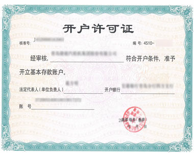 開(kāi)設(shè)銀行基本戶 【開(kāi)戶許可證】